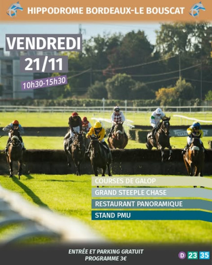 Le Grand Steeple-Chase de Bordeaux est l'événement phare de la saison d'obstacle dans la région. Le rendez-vous est donné le vendredi 21 novembre pour une journée complète de courses, dont l'apothéose sera l'épreuve du Grand Steeple-Chase elle-même.