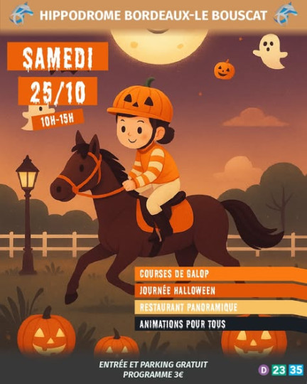 L'Hippodrome du Bouscat (Bordeaux) ouvre ses portes ce samedi 25 octobre pour un événement double : une journée de courses de Galop palpitantes, couplée à une grande fête d'Halloween gratuite pour toute la famille.