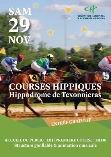 La Société de courses hippiques de Limoges est ravie d'inviter le public à une grande journée de courses hippiques le samedi 29 novembre à l'Hippodrome de Texonnieras. Cet événement s'annonce comme un après-midi alliant compétition sportive et animations conviviales pour toute la famille.